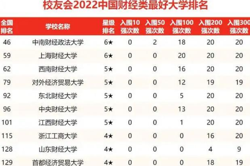 2022财经类高校排名更新,“中南大”不负众望,东北财大跻身前五!