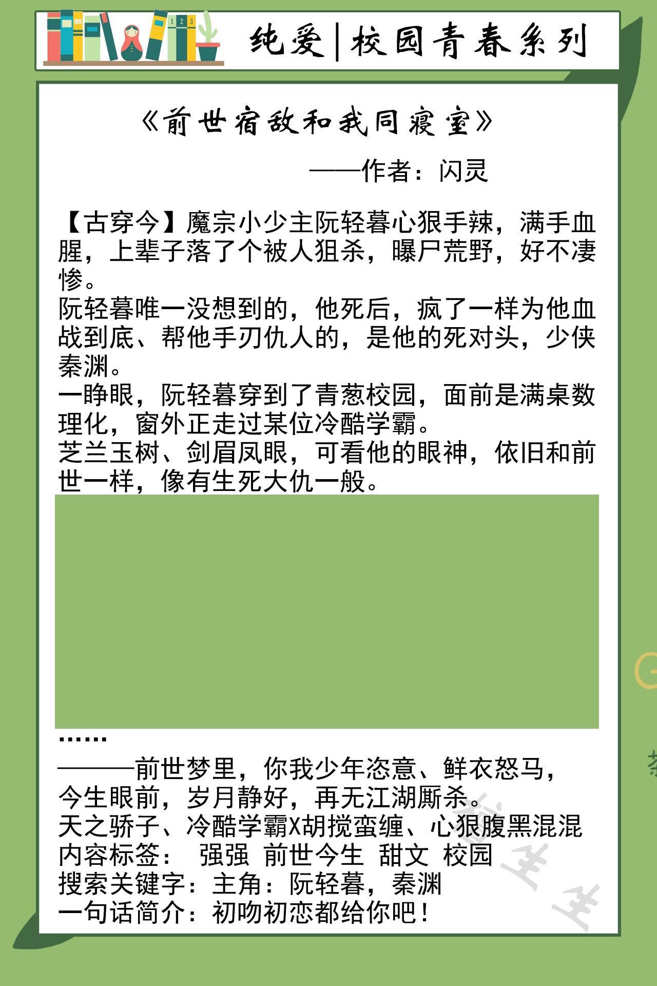 小短评:腹黑体委阮轻暮VS冷酷学霸班长秦渊。主线就是正邪两道的两位冤家同时穿越到现代成高中生一起努力学习的故事。最初是阮轻暮先认出秦渊,通过他胎记的位置确定秦渊就是上辈子那位为他复仇的死对头,秦渊是在梦境中一点点恢复前世的记忆,基调就是走苏爽日常风,主打学习和少年轻狂的那些事,其它几对副CP的感情线也写得不错,看完让人怀念校园生活的点点滴滴,容易引人共鸣!