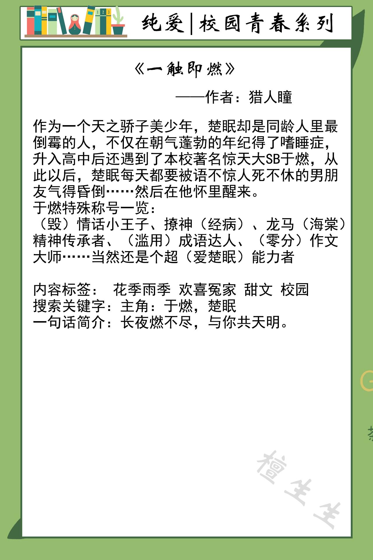 又到开学季了,所以推几本俏皮甜蜜的纯爱校园文吧!献给喜欢阅读的童鞋们!