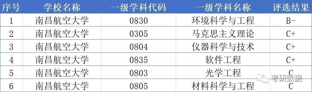 以下是为大家整理的南昌航空大学学科评估结果排名(第四轮),供大家参考: