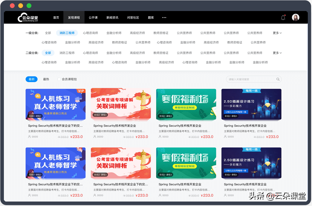 2、用SaaS服务,如云朵课堂,这种方式也不需要自己开发,而且使用方便,同时还能够建立自己的品牌感,对自己的学生进行信息管理,便于后期维护。
