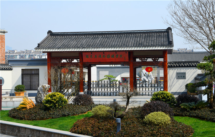 走进老门东,仿佛走进旧时岁月里的南京,心会跟着一起安静,秦淮外国语学校小学部坐落于老门东的边营里。黑瓦红木,雕窗立柱,古色古香的校门映衬在蓝天白云下,迈入其中,如同身入书院,背后是繁华,抬眼是书香。学校将秦外的教育思想融入新校园建筑中——兼具南京古典文化和国际化办学视野的品牌学校。