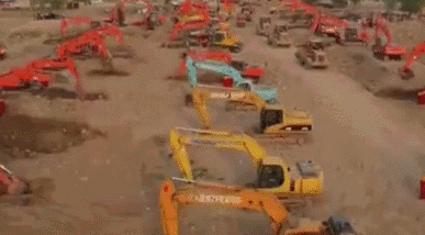 这是蓝翔的招牌专业,在蓝翔的宣传广告里,是这样的画面:上百亩的黄土地上整齐地排列着上百个蓝翔挖掘机,他们整齐划一,铺陈在整片黄土地上。