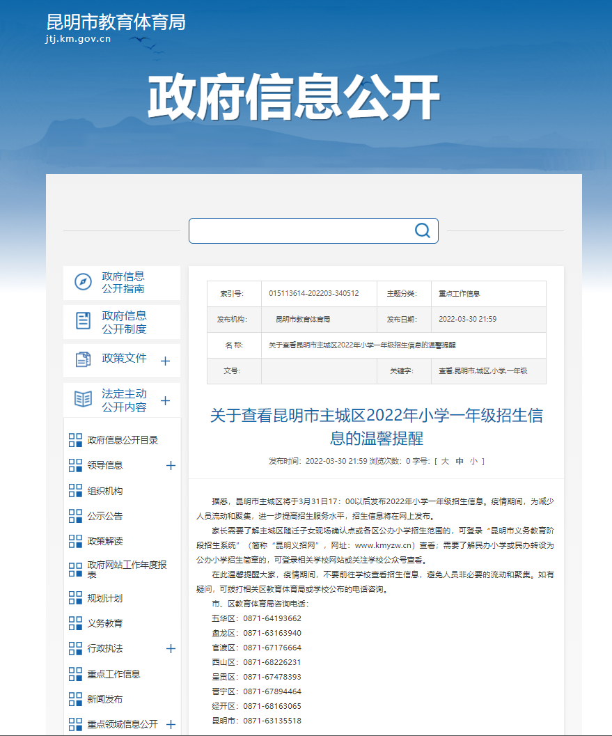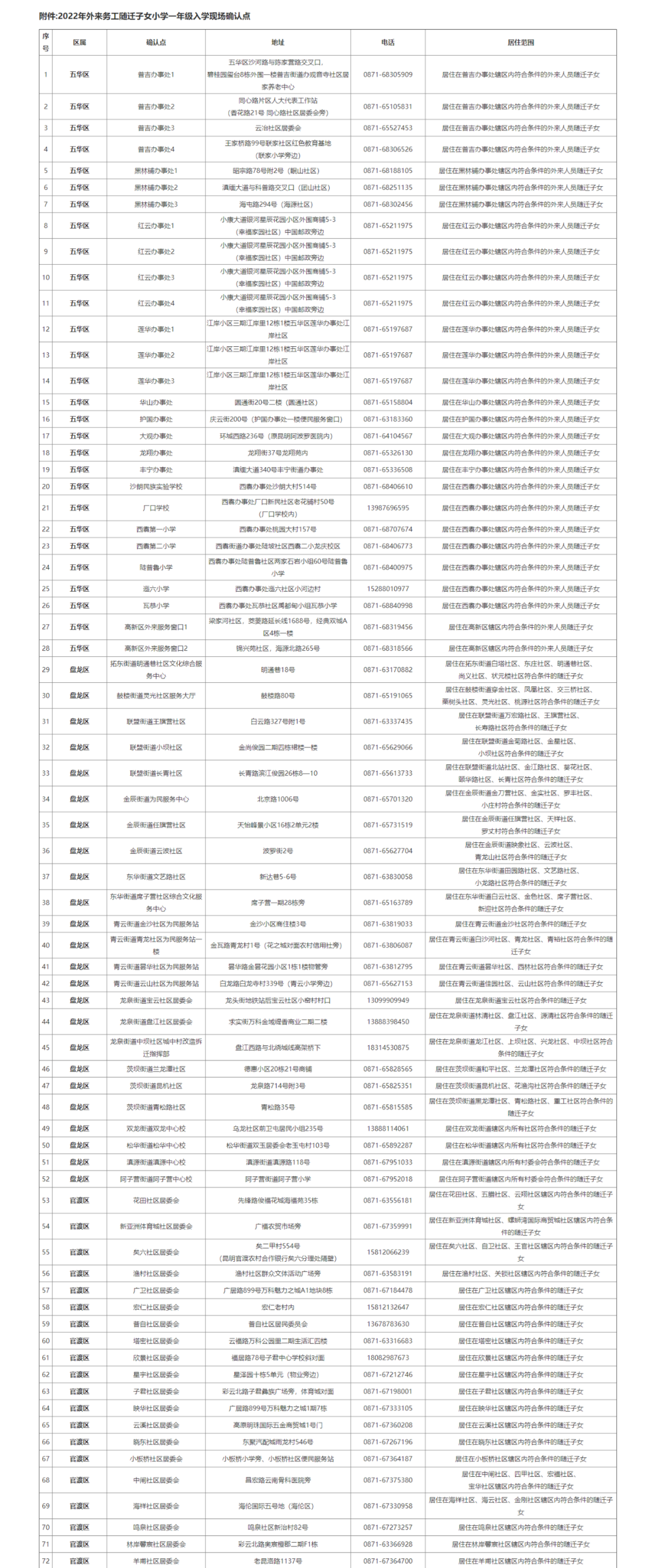 昆明市主城区2022年小学一年级招生信息的温馨提醒