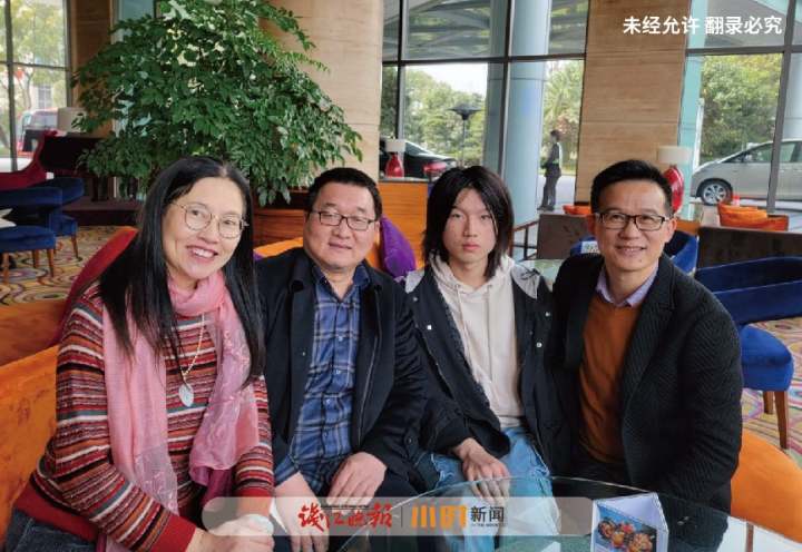 美愿教育创始人张荣(右一)与尤其同学一家摄于宁波