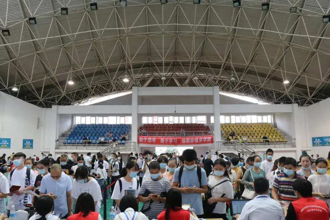 你以为这是交易大厅?其实这是在财贸职高招生处,中考成绩公布第二天,家长、学生们争先前往咨询报名。
