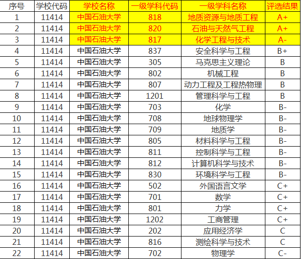 另外成都理工大学、东北石油大学、西安石油大学、河北地质大学分列8~11位,是属于中等水平的大学,也比较适合中等考生报考,成都理工大学、河北地质大学的地质;东北石油大学、西安石油大学的石油与天然气工程、化学工程与技术专业。这其中实力相对比较弱的就是西安石油大学,西安石油大学的这些优势学科在评估时都是C类学科,竞争力上是不如前面的,但是也是为普通考生提供了机会。