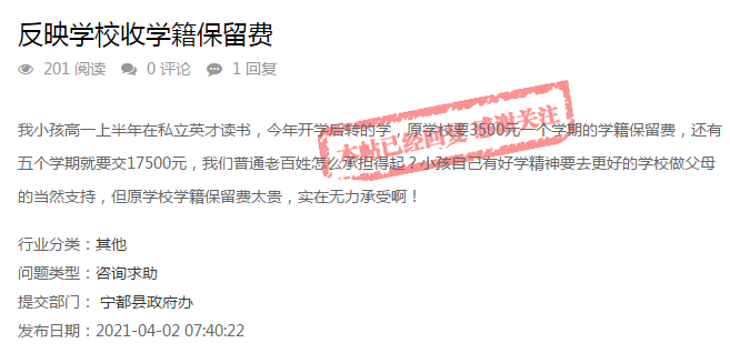 经核实,本学期开学初,宁都私立英才学校高中部分学生(家长)提出转学申请,为保证学生生源总体稳定,防止出现人籍分离的情况,该校要求学生(家长)需严格执行相关转学程序,并要求学生(家长)缴纳部分学杂费,未发现该校收取学生(家长)学籍管理费的情况。