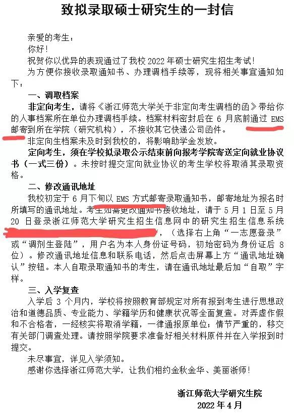 比如,浙江师范大学的文化创意与传播学院,就用信件的形式,通知拟录取的考生,接下来都需要做什么。