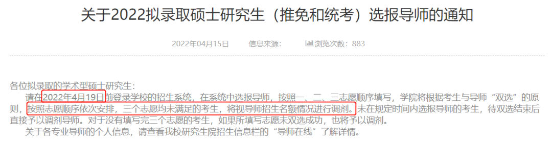 除了发布拟录取考生后续准备工作的通知外,多校还发布了关于拟录取考生选报导师的通知。