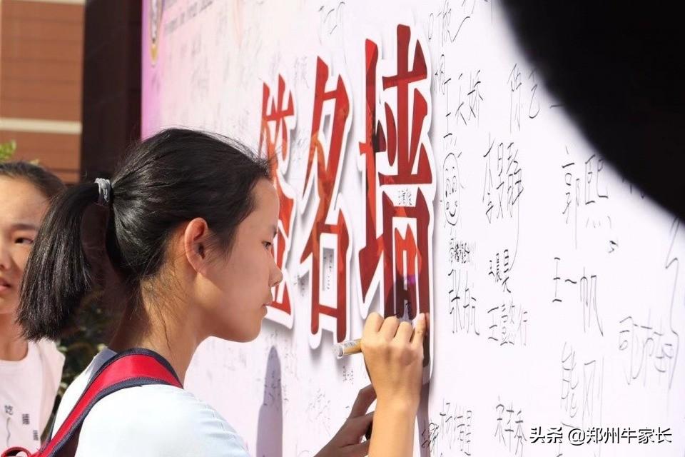 签名墙前,孩子们放下行李在老师指引下,拿起签名笔,在墙上郑重签下自己名字,并与家长一起合影留念。