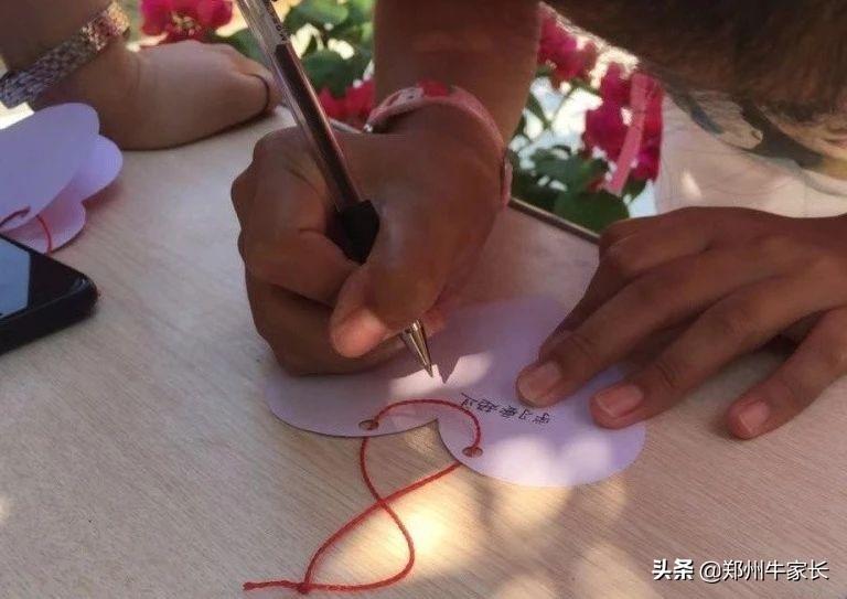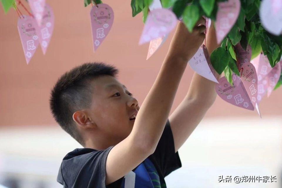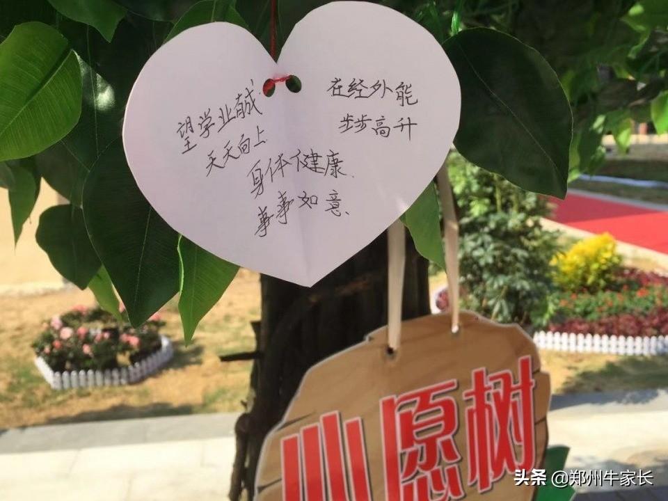 许愿树下,执勤老师把准备好的心愿卡交到每位学生的手里,孩子庄重写下自己梦想,一脸虔诚地把它挂在许愿树上。