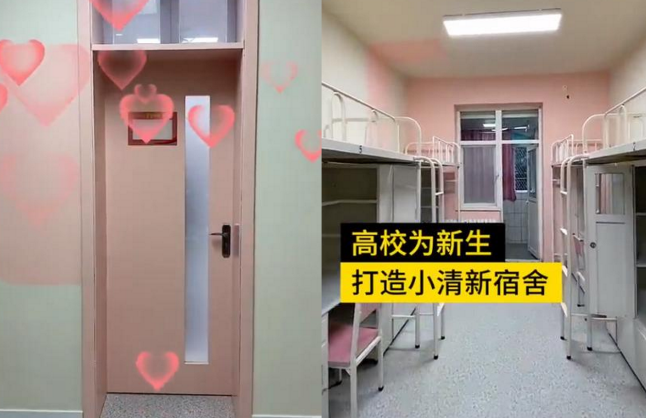 除了武汉科技大学人性化管理外,西安翻译学院也为学生们提高学生们生活质量,做出了努力,这所学校为大一新生打造“小清新宿舍”,女生是粉色的墙,男生是蓝色的墙,住进这样的宿舍心情都好了很多。