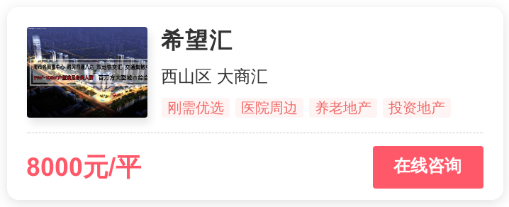 目前昆明的在售新盘,还有若干个与本项目单价水平相似的项目,那么这几个项目哪个更适合你?点击以下楼盘卡片查看项目详情。