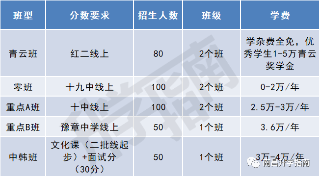 2020年计划招生人数380人(8个班),2个青云班,2个零班,3个重点班,1个中韩实验班(青云班和零班同批师资)。