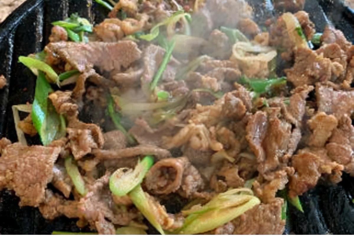 八旗烤肉是老北京传统的炙子烤肉,牛羊肉是招牌,都已经腌制好了,烤熟了直接吃都特别香。这里的烤肉基本都自带洋葱,既有股清香味儿,闻着也不油腻。