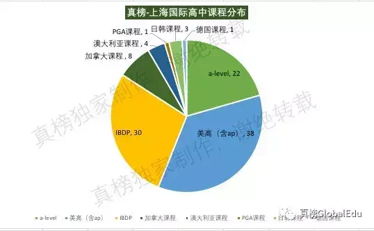 上海的课程多元,除了这三大课程外,加拿大各省课程、澳大利亚各州课程等也均有落地,还有些不算太主流的课程,如PGA课程由上海大同中学国际课程班开设,PGA课程是一种中美融合课程。德国课程由曹杨二中开设,日韩课程除了本国外籍学院外,文来中学国际部也有开设日本高中课程。