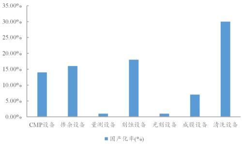 此外,刻蚀设备、掺杂设备和CMP设备方面也看到了国产化的曙光,当前三者国产化率在15%左右,而清洗设备的国产化率更是达到了30%。