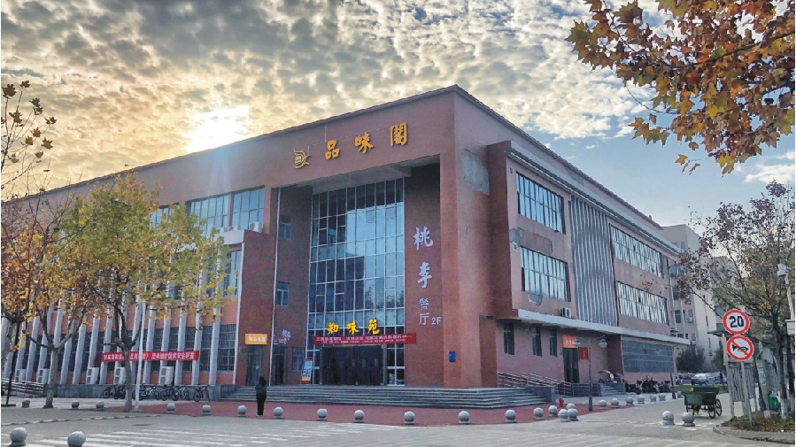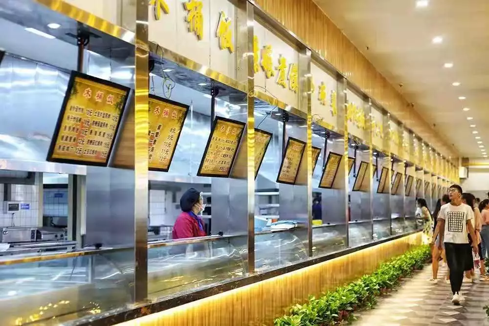 一号食堂建筑面积约11500平方米,框架结构一二层为学生就餐大厅,三层为腾辉学生活动中心,食堂北侧建有综合楼,可提供洗浴,美发,存取款,快递收发、校园卡管理等日常生活服务,可满足3000名学生同时就餐。同时,配备餐饮一条街,可满足1600人同时就餐。