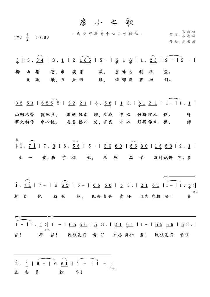这是一首抗战时期,时任校长的陈鼎铭先生在1938年写下的校歌歌词,经苏清辉老师再度创作后由麦浪录制,献礼康美中心小学百年校庆!