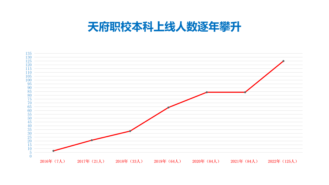 本科上线125人,本科上线人数位居全成都市中职学校第2名。专科上线724人,其中534人被大学提前录取;另有8名同学获赴日留学资格。
