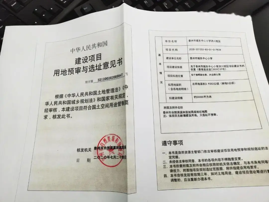 6月23日,泰州市自然资源和规划局网站发布了《泰州市城东中心小学济川校区项目》批前公示。