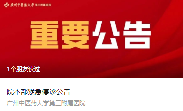 4月1日,广州中医药大学第三附属医院发布停诊公告: