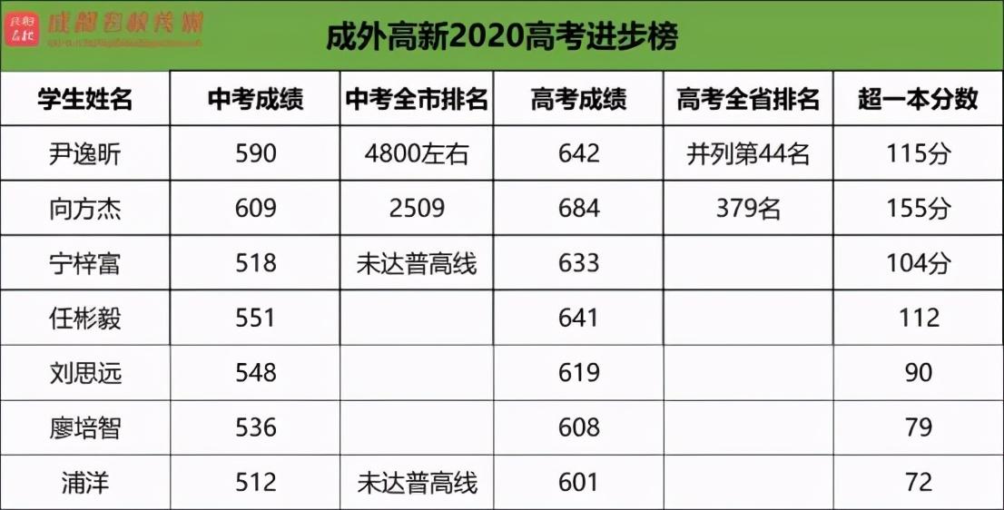 2020年高考成外高新打了“翻身仗”,培养出了全省44名的尹逸昕,多名学生提分100+,被985、211名校录取,把不是尖尖的学生磨成了尖尖!