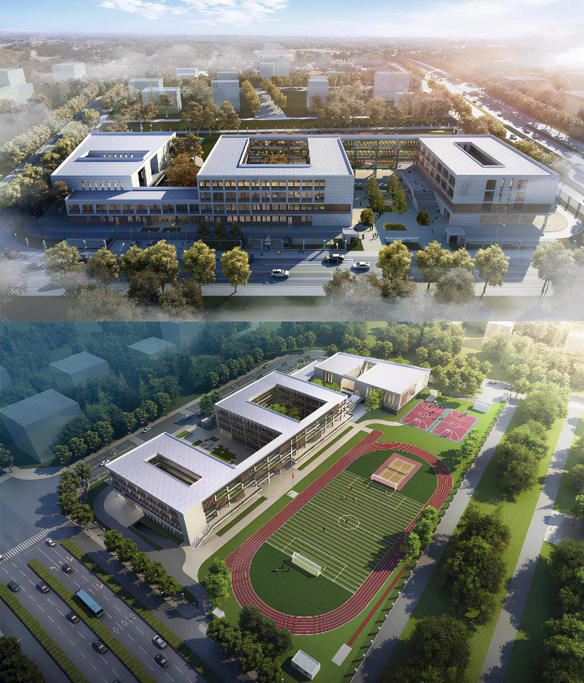 按照规划要求,建筑占地面积8107.91㎡,道路11757.20㎡,绿化21199.00㎡,300米田径运动场1块,篮球场3块,排球场2块,器械体操区1块。地下停车位1280个(其中地下机动车停车位270个,地下非机动车停车位1010个)。该学校已经建成,预计2022年春季学期开学。