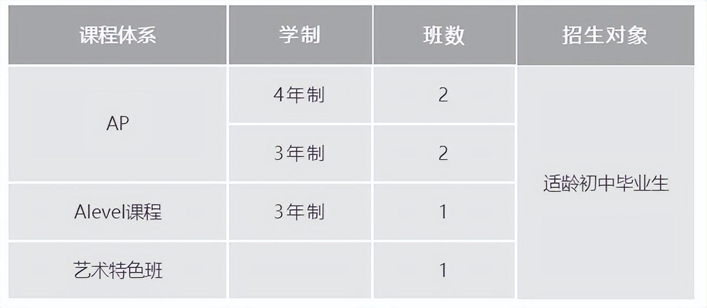 开设课程:Level课程剑藤班、A-Level课程文理班、艺术课程特色班