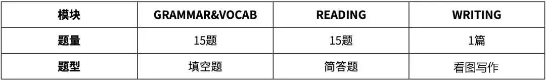 词汇板块主要考察学生词汇储备和辨析的能力,题目考察的形式为词汇拼写纠错。语法则主要以时态,语态,情态动词为主。