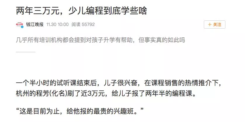 线下编程课程,收费不菲,在一线城市,一年费用在一万左右,三四线城市,也动辄六七千,但是为孩子报班学编程的家长却越来越多,这是为什么呢?