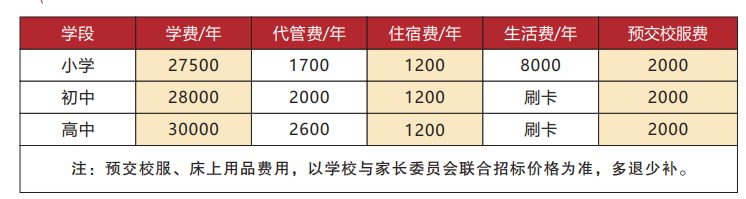 2022—2023年各学段收费标准
