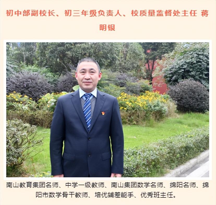 历史高级教师、南山集团名师。绵阳市骨干教师、明星教师和先进教育工作者、绵阳市优秀共产党员。