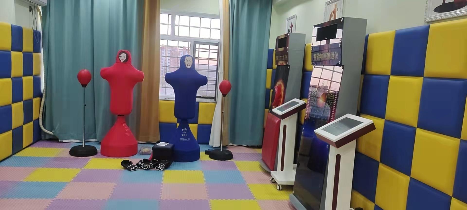 情绪宣泄室是用来宣泄情感的功能室。它的主要功能主要也是用于宣泄情感,达到一个释放减压的目的。宣泄室能为情绪不稳定、有暴力倾向的孩子提供一个在安全的可控制空间借助器具通过击打,呐喊、注意力转移的方法,宣泄负面情绪和压力,体验宣泄带来的舒畅感觉,从而实现身心放松,提高心理健康水平。