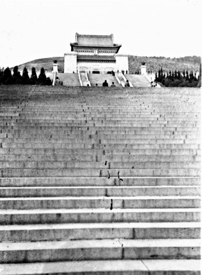 蒋介石等军政官员穿过陵门,先行登上最高处的祭堂,在贵宾室稍事歇息了会。