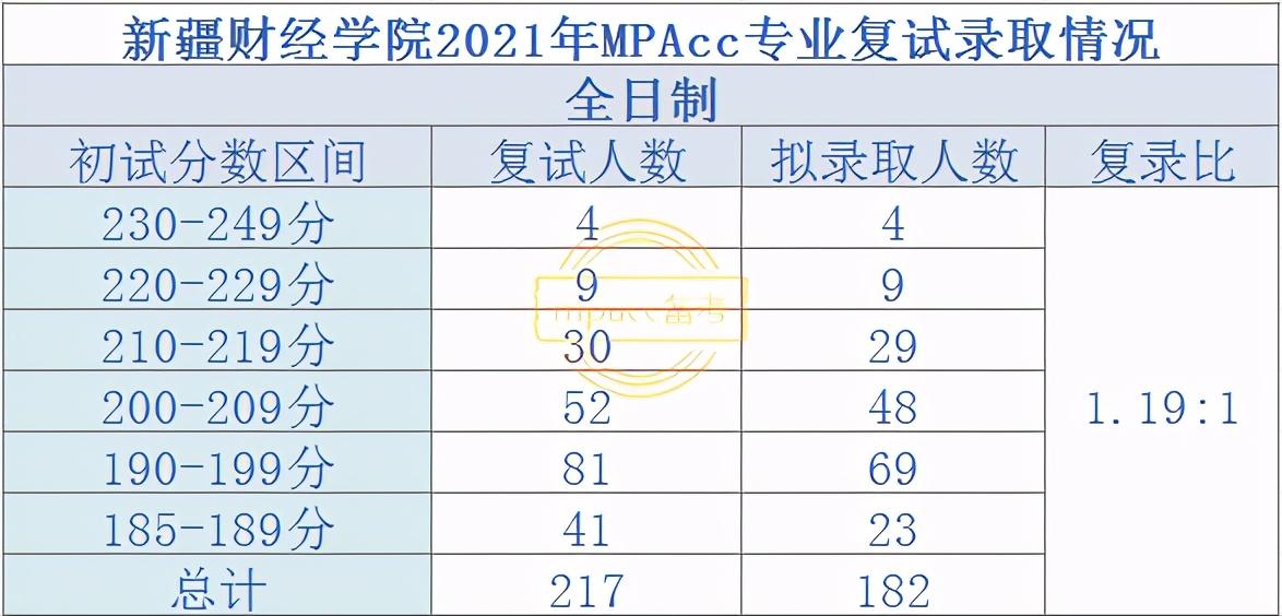 2021年MPAcc专业计划招收全日制173人,包含2名士兵计划;非全日制30人。在实际录取工作中,一志愿进入复试352人,拟录取171人,虽然录取人数众多,但是总体上看刷人比率较大,且大部分被刷的是低分数段考生。