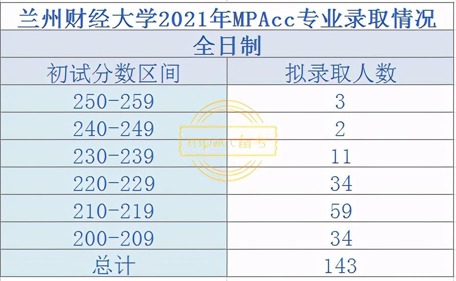 2021年MPAcc专业复试分数线为205/41/82,计划招收全日制125人,实际拟录取143人。实际录取人数比计划招生人数多出18人。
