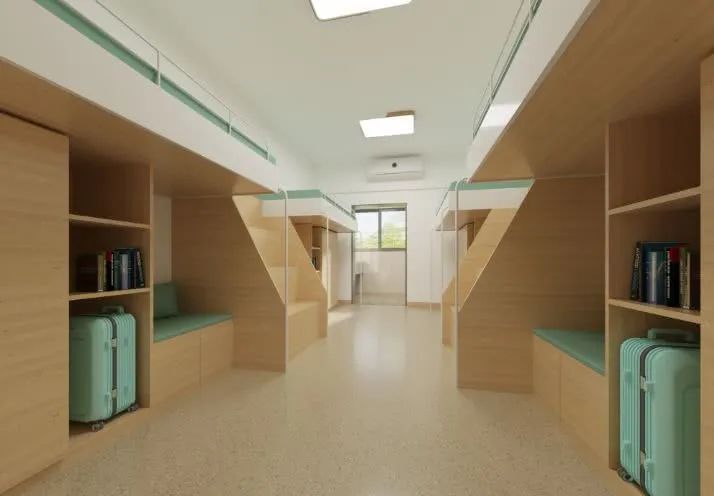 学校拥有1栋教师公寓和2栋学生公寓,宿舍内部家具全部由学校团队依据学生成长规律自主设计,并将室内空间全部用作休息。而宿舍区楼层的公共空间,被设计成为了学生自主社交活动场所,其中,3栋宿舍一楼设计了3个开放大院子,用于师生休闲运动、交流游戏,兼具通行和生活等。