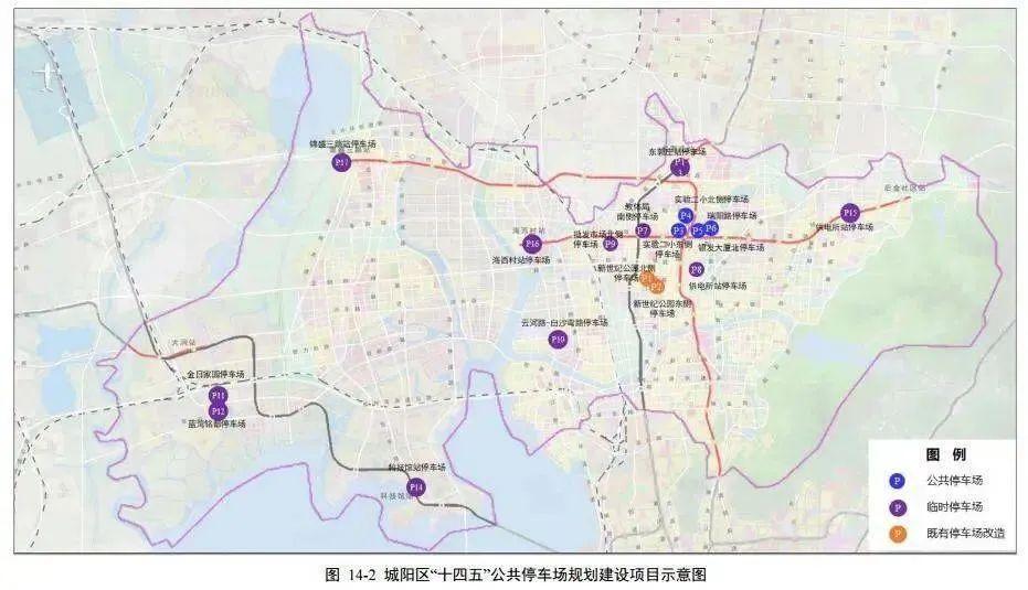 在M1号线和M8号线的基础上,城阳在“十四五”期间城阳区将启动建设 7 号线二期(北段)工程(2021-2023)、8 号线支线工程 (2025-2028)、9 号线一期工程(2023-2027)、15 号线一期工程(2024-2028)4 条轨道线工程,届时形成“二横三纵”的轨道交通网络。结合轨道线网布局,启动东郭庄站、科技馆站、锦盛三路站、海西村站、供电所站 5 处轨道“末端”站周边 P+R 停车场建设。