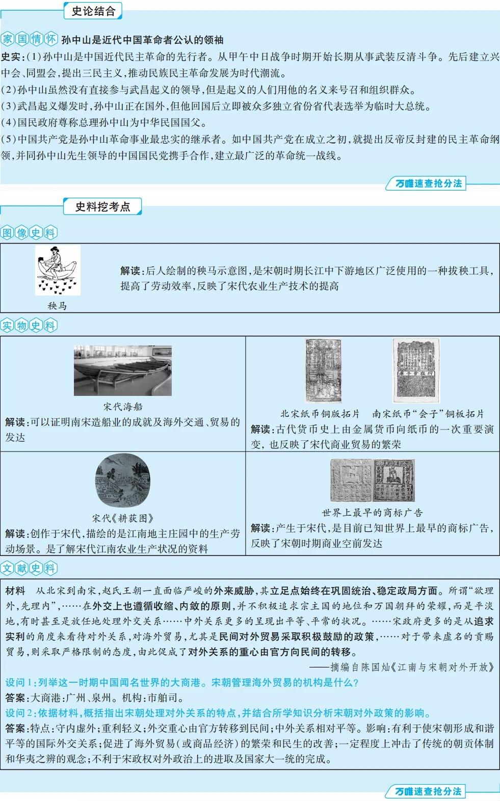 落实核心素养:侧重从“唯物史观”“家国情怀”等维度结合文献史料、图像史料、实物史料、口述史料挖掘考点,以史料推史论,将核心素养落地到实处。