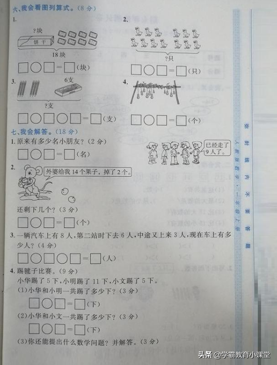 今天,学霸老师给小同学们分享的是,人教版一年级数学期末试卷,本套试卷题型多样,将本册数学学习重难点知识点都有覆盖到,非常适合一年级的小同学现在练习哦。