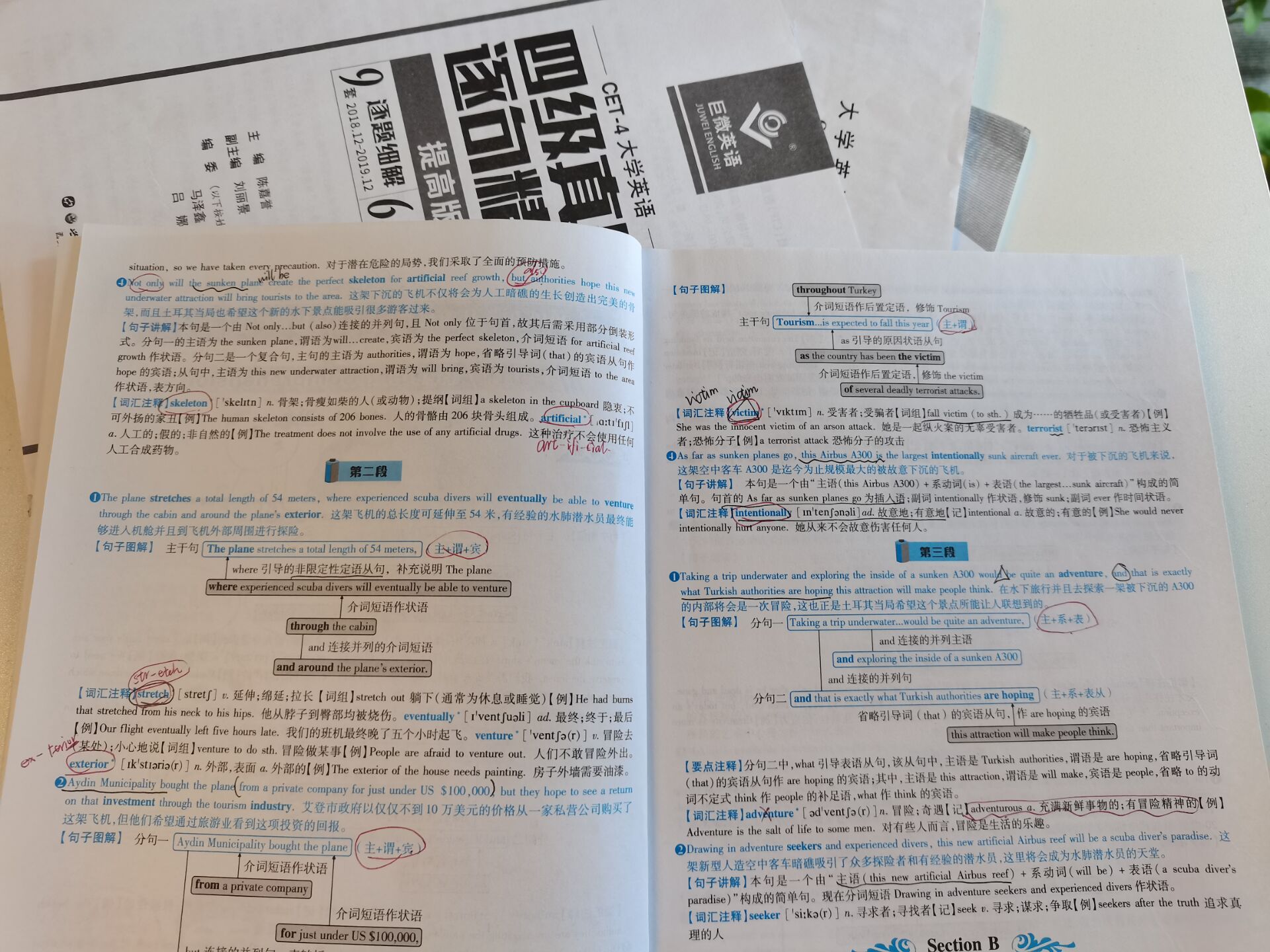阅读理解分数占比最高,难度也是最大的,这就是为什么一直强调基础弱的同学,选购巨微英语的《四级真题逐句精解》,讲解超级详细,是唯一一本将阅读文章进行拆解的真题书,在看文章的过程中,打牢基础,深化理解,学会基础语法知识!