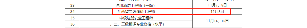 江西省人事考试网发布《江西省人事考试中心2020年度考务工作安排表》,确定江西省2020年二造考试时间为11月8日。