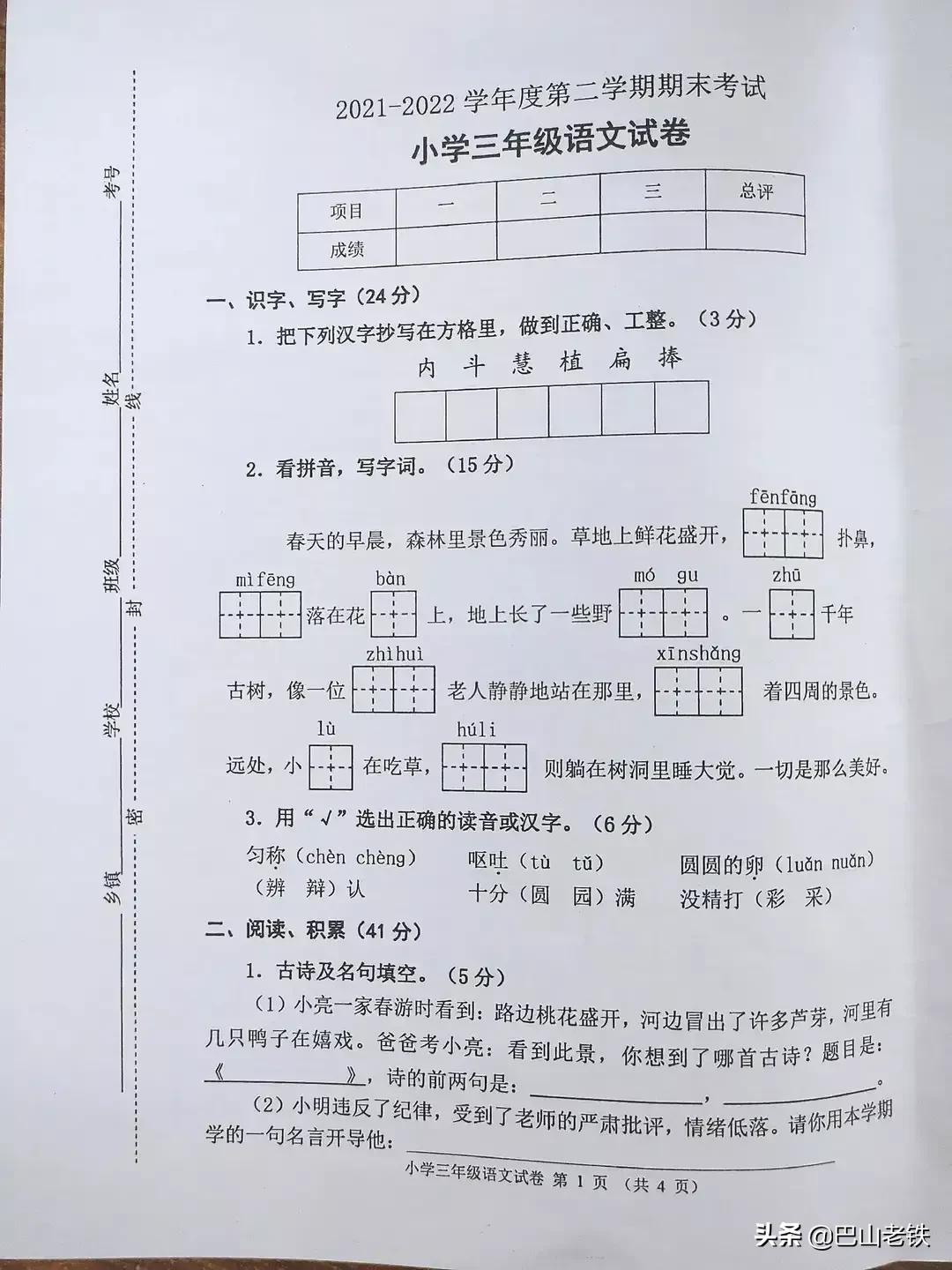 版权声明:我们致力于保护作者版权,注重分享,被刊用文章【小学三年级期末考试试卷(2021)】因无法核实真实出处,未能及时与作者取得联系,或有版权异议的,请联系管理员,我们会立即处理! 部分文章是来自自研大数据AI进行生成,内容摘自(百度百科,百度知道,头条百科,中国民法典,刑法,牛津词典,新华词典,汉语词典,国家院校,科普平台)等数据,内容仅供学习参考,不准确地方联系删除处理!;