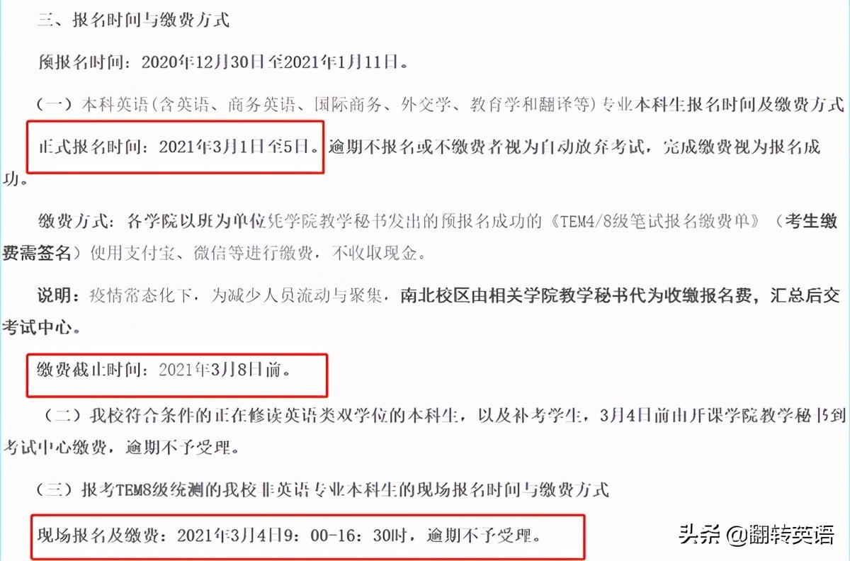 不过,英语专四专八的报名时间并不是统一的,每所学校会有所不同,比如广东外贸外语大学英语专四专八正式的报名时间为2021年3月1日至5日。