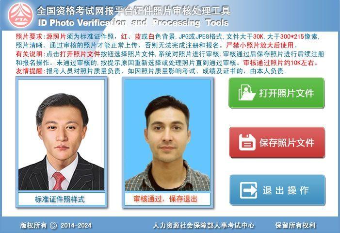 照片需要下载安装《照片审核工具》,当照片显示审核通过后才能保存上传。