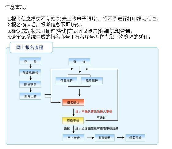 注册并登录后,按提示进行个人信息填写、报名照片上传,等待审核完成并缴费即可: