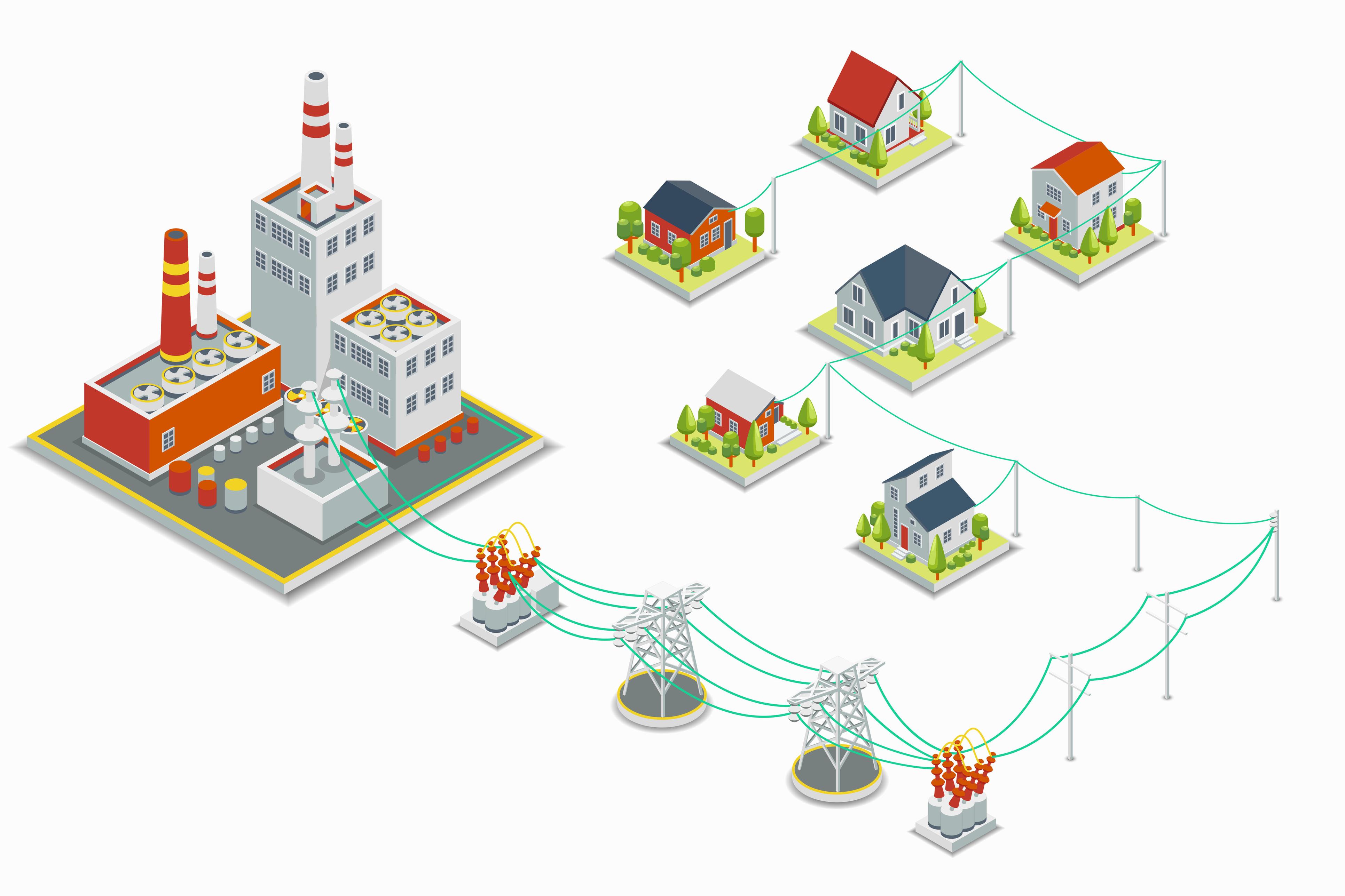 电网概念图。实际的电网比图中复杂无数倍,是人类历史上复杂度最高的单一系统