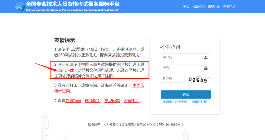 报名正式开始前,首次报考的人员可以先完成考生注册和照片上传,等待报名开始后再根据自己的报考意愿填报信息。